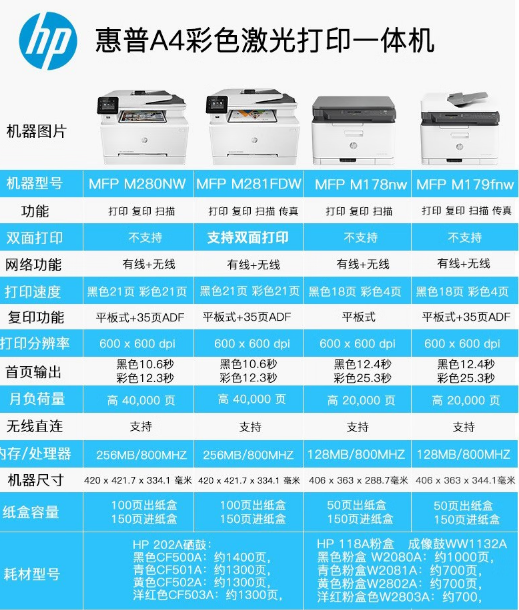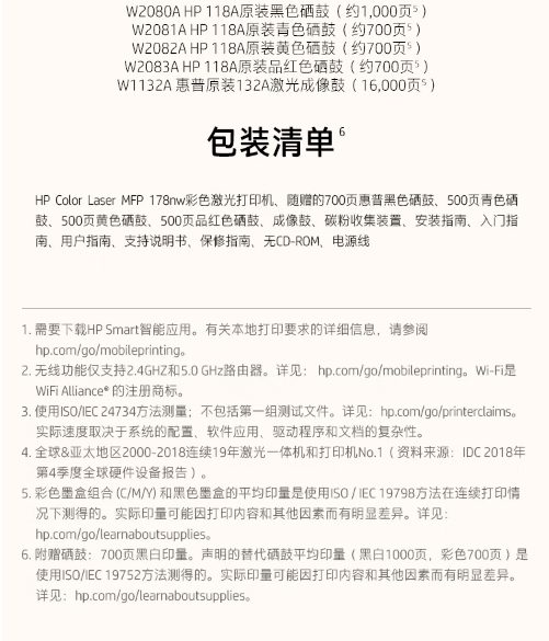 惠普三合一彩色激光打印机(网络版)178NW
