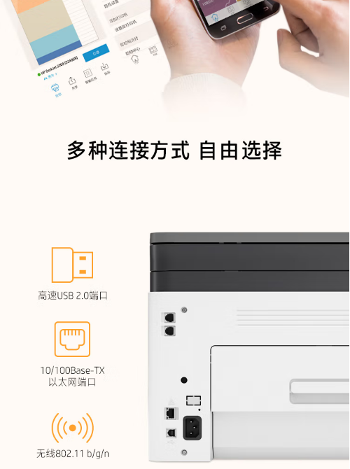 打印、复印、扫描多功能彩色一体机,支持有线无线网络
